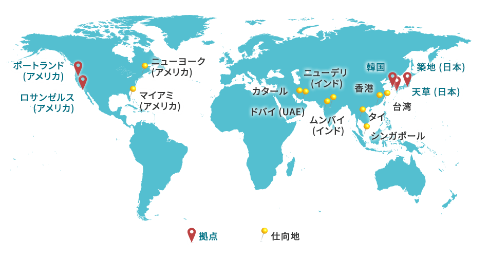 ポセイドングループは世界に広がるグループネットワークと、日本食ヘの深い理解で、世界の日本食材ニーズに対して日本発を中心に世界のフードビジネスに貢献しております。海神貿易はポセイドングループのアジアの拠点地として、大きな役割を担っていると共に、世界に広がるネットワークに鮪や和牛を中心に日本の厳選素材やフードビジネス企画を供給しています。また、お客様のニーズにお応えするために、豊富な知識と情報をフルに発揮しながら日本国内外にアンテナを張り巡らせ、敏感にキャッチし具現化していきます。