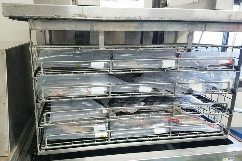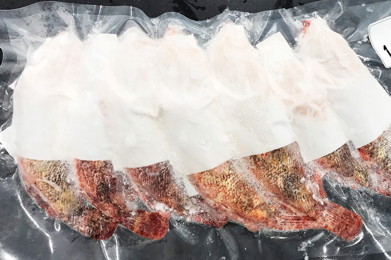 -30℃ の液体アルコールで直接凍らせるので、パックした問の鮮度のまま品質を維持できます。海外でも身の締まった日本の刺身を食べられます。